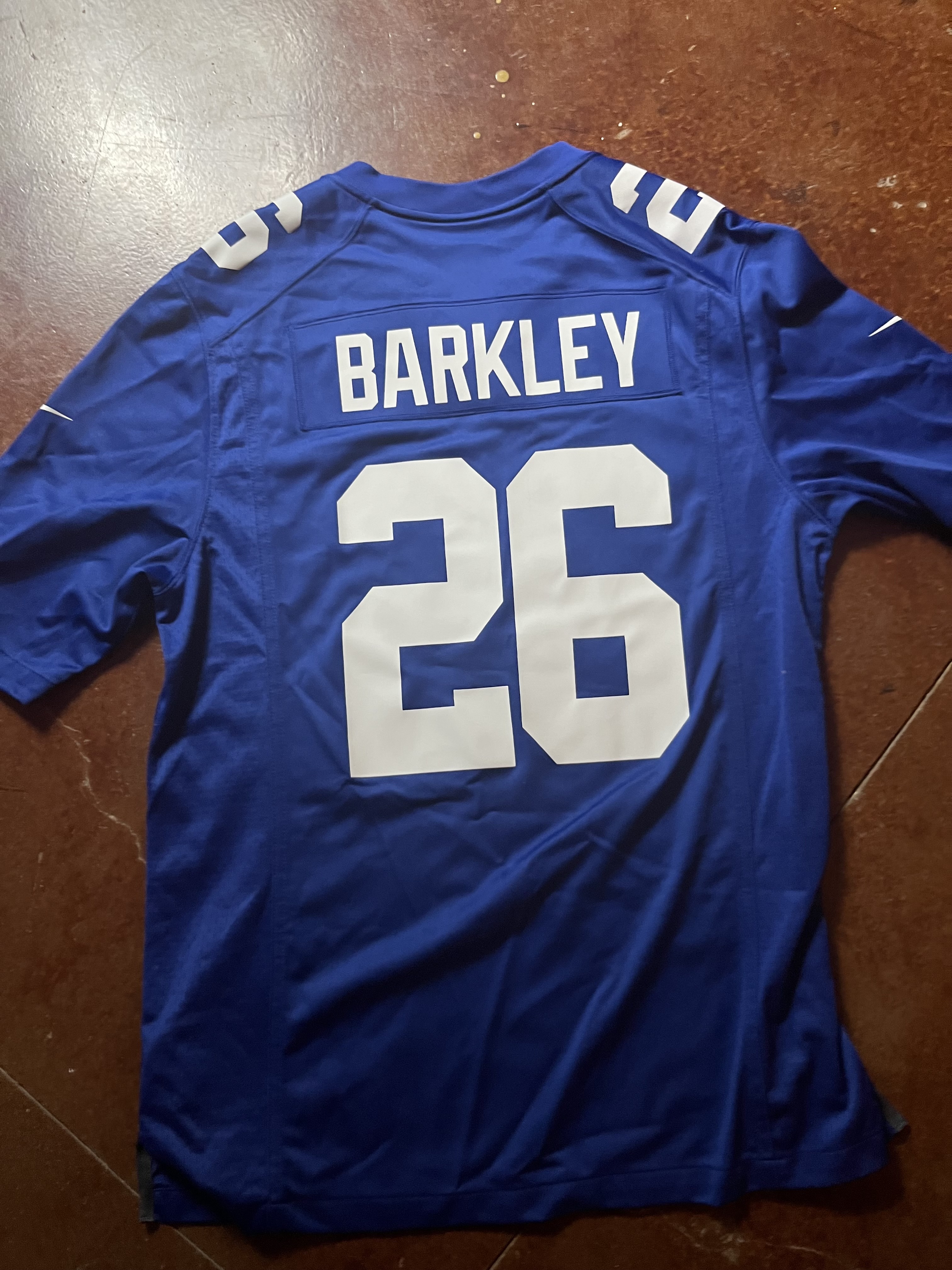 Show your Giants pride with this official Nike NFL jersey featuring star running back Saquon Barkley's #26. This royal blue jersey is in excellent condition, perfect for game day or any fan. Represent your team in style and comfort.